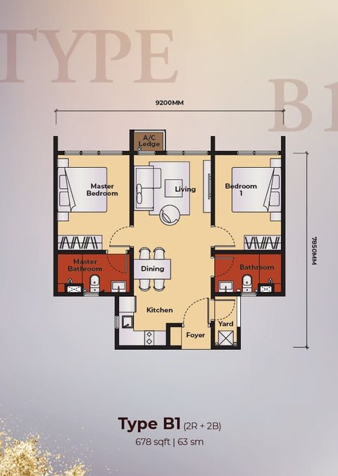 Type B: 678sf, 2R2B, 2 CP, installment from RM2400 monthly